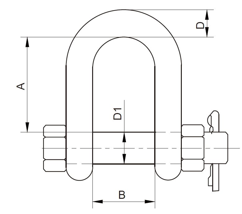 Цельная ковка, высокая ударопрочность: D-образное кольцо и штифтовой вал изготовлены по технологии цельной ковки (без сварки), закалены и подвергнуты термической обработке (твердость HB220-260), с ударной вязкостью ≥ 40 Дж (при низкой температуре -40 ℃), что на 40% выше ударопрочности литого типа и подходит для сценариев динамических нагрузок (например, подъем буровых платформ на нефтяных месторождениях).