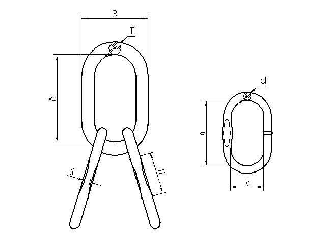 | Stock no. | Size (in) | WLL (t) | A (mm) | B (mm | D (mm | a (mm | b (mm | d (mm | Weight (kg) |