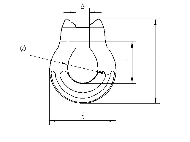 | Stock no. | Размер(mm) | WLL (t) | A (mm) | B (mm) | H (mm) | L (mm) | φ (mm) | Масса(kg) |