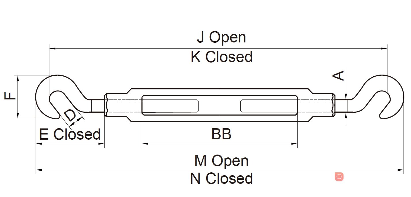 Талреп американского типа с крюком и крюком, также известный как американский талреп с двойным крюком, является практичным устройством для регулировки натяжения и длины веревок, кабелей и т. д. Он имеет крюки на обоих концах, а открытая структура удобна для быстрого подвешивания различных предметов, а операция удобна и эффективна. Основными материалами корпуса обычно являются углеродистая и нержавеющая сталь. Углеродистая сталь кованая и термообработанная, обладает высокой прочностью и хорошей вязкостью; нержавеющая сталь (например, нержавеющая сталь 316) обладает превосходной коррозионной стойкостью. Уникальная левосторонняя и правосторонняя резьба внутри позволяет точно изменять расстояние между двумя крюками путем вращения среднего регулировочного корпуса, реализуя точный контроль натяжения. Он широко используется во многих областях, таких как промышленность, строительство и судостроение.