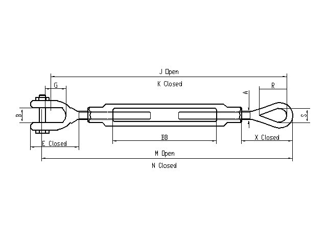 Талреп американского типа с ушком и челюстью - это практичное устройство для регулировки натяжения тросов, кабелей и т. д. Один конец - это закрытое ушко, которое может быть надежно соединено с неподвижной конструкцией с помощью штифтов, болтов и т. д.; другой конец - специальная челюсть, которая может быть затянута болтами для плотного зажима различных тросов, стержней и т. д. Основной корпус в основном изготовлен из высококачественной углеродистой стали, которая обладает высокой прочностью и хорошей вязкостью после ковки, закалки и отпуска; некоторые изделия изготовлены из нержавеющей стали 316, которая обладает превосходной коррозионной стойкостью. Уникальная внутренняя левая и правая резьба позволяют оператору точно изменять расстояние между двумя концами путем вращения среднего регулировочного корпуса для достижения точного контроля натяжения. Он широко используется в промышленности, строительстве, судостроении и других областях.