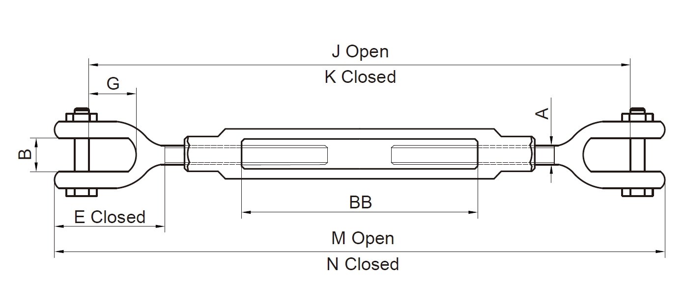 Талреп американского типа с челюстью и челюстью, также известный как американский двухкулачковый винтовой талреп, представляет собой практичное устройство, используемое для регулировки натяжения и длины тросов, кабелей и т. д. Он имеет специальную конструкцию челюстей на обоих концах, которые могут быть закреплены болтами для плотного зажима различных тросов, стержней и т. д. с прочным соединением и нелегким проскальзыванием. Основной материал корпуса, как правило, высококачественная углеродистая сталь (например, сталь 1045), которая кованая, закаленная и отпущенная для значительного повышения ее прочности и ударной вязкости; некоторые высококачественные изделия используют нержавеющую сталь 316, которая обладает превосходной коррозионной стойкостью. Уникальная левая и правая резьба внутри позволяют оператору точно изменять расстояние между двумя концами путем вращения среднего регулировочного корпуса для достижения точного контроля натяжения. Он широко используется во многих областях, таких как промышленность, строительство и судостроение.