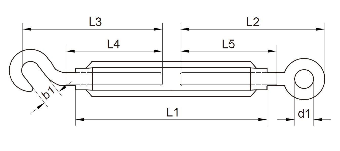 Талреп итальянского типа с рымом и крюком — такелажная деталь, широко используемая во многих областях, таких как промышленность, строительство и судостроение. На одном конце он имеет кольцевую пряжку-рым, изготовленную методом ковки. Закрытая конструкция обеспечивает устойчивость и надежность при соединении с кольцами троса, скобами и т. д., а также обладает хорошими противоскользящими характеристиками; другой конец представляет собой прочный крюк, который удобно и быстро крепится к различным точкам крепления. Средний регулировочный корпус имеет лево-правую резьбу, а расстояние между двумя концами можно точно отрегулировать вращением для достижения точной регулировки натяжения. Материал по выбору, включая углеродистую сталь (оцинкованную или окрашенную для антикоррозионной обработки) и нержавеющую сталь 304, 316 (высокая коррозионная стойкость). Ковка повышает прочность, а термическая обработка повышает ударную вязкость и износостойкость. Он может адаптироваться к различным соединителям, таким как стальные тросы и тяги, и может стабильно работать в вибрирующей среде.