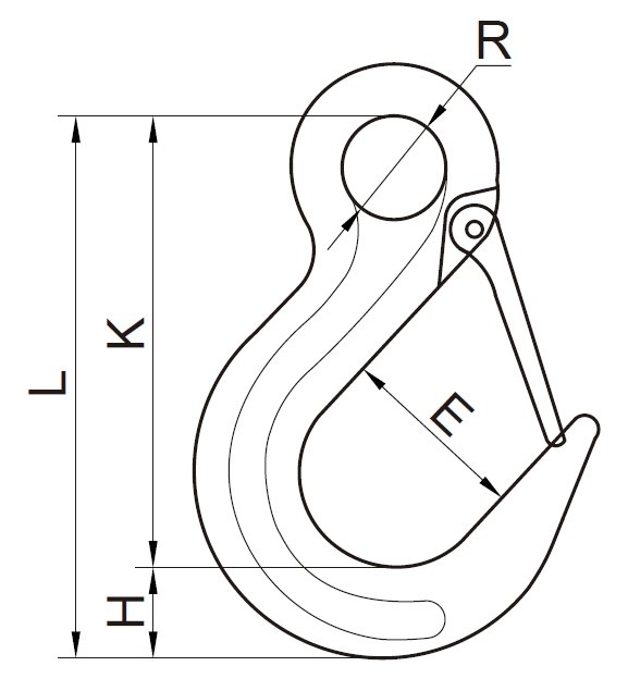Подпружиненная предохранительная защёлка для защиты от самоотцепления. Оснащена прочной подпружиненной предохранительной защёлкой (также называемой «защёлкой» или «затвором»), которая закрывает зев (отверстие) крюка. Защёлка автоматически закрывается и фиксируется после прикрепления крюка к грузовому кольцу, звену цепи или анкеру, создавая полностью герметичное соединение. Это предотвращает случайное отсоединение груза из-за вибрации (например, при транспортировке грузовика), резкого смещения груза или ошибки оператора. Защёлку также легко открыть вручную (с помощью небольшого язычка или рычага) для быстрой установки/снятия крюка, обеспечивая баланс безопасности и эффективности.