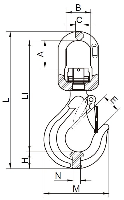 Поворотный крюк G80 с защёлкой и подшипником – это самоблокирующийся поворотный крюк с подшипником класса прочности 80. Он выкован из высококачественной легированной стали и подвергнут закалке и отпуску для высокой прочности. Встроенные подшипники обеспечивают плавное вращение на 360°, эффективно снижая скручивание стропа. Оснащённый прочным самоблокирующимся язычком, он автоматически блокируется при нагрузке и обеспечивает надёжную защиту. Подходит для цепей G80 стандарта EN818-2 с рабочей нагрузкой от 2 до 31,5 тонн. Вся продукция прошла поштучную проверку при нагрузке, в 2,5 раза превышающей рабочую, 20 000-кратное испытание на усталость при нагрузке, в 1,5 раза превышающей рабочую, и 100% магнитопорошковую дефектоскопию. Качество гарантировано.