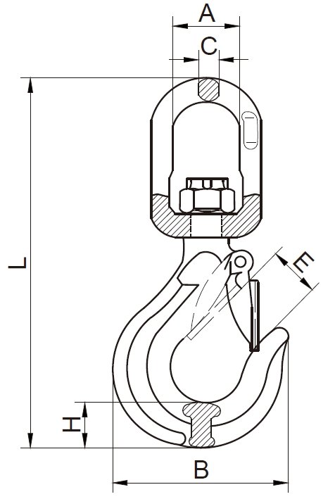 Поворотный самоблокирующийся крюк G80 без подшипника изготовлен из высокопрочной легированной стали и имеет функцию самоблокировки. Он автоматически блокируется при нагрузке, предотвращая падение тяжёлых предметов. Крюк может вращаться на 360 градусов и предотвращает перекручивание троса. Он часто используется для подъёма и подвешивания тяжёлых предметов в строительстве,