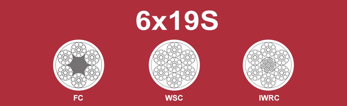 Структура стального каната: 6 * 19S-FC, 6 * 19S-WSC, 6 * 19S-IWRC