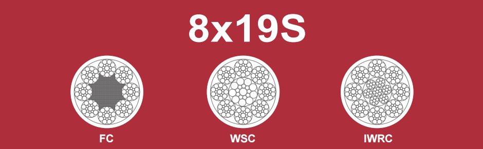 Структура стального каната: 8*19S-FC, 8*19S-WSC, 8*19S-IWRC