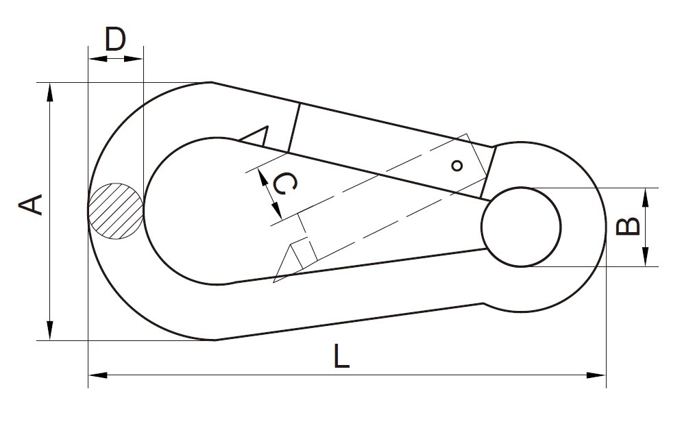 | Номер на складе | Размер мм | А мм | Б мм | С мм | Д мм | Д мм | SWL фунты | Вес нетто 100 шт. кг |