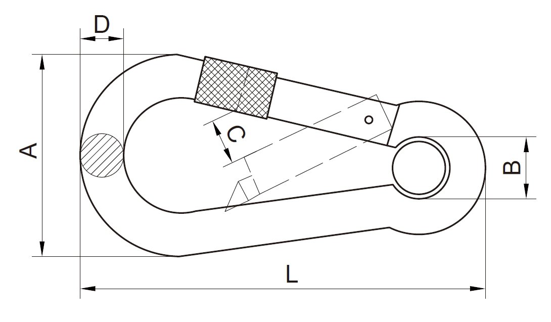 | Stock no. | Size mm | A mm | B mm | C mm | D mm | L mm | SWL lbs | Net weight 100pcs kg |